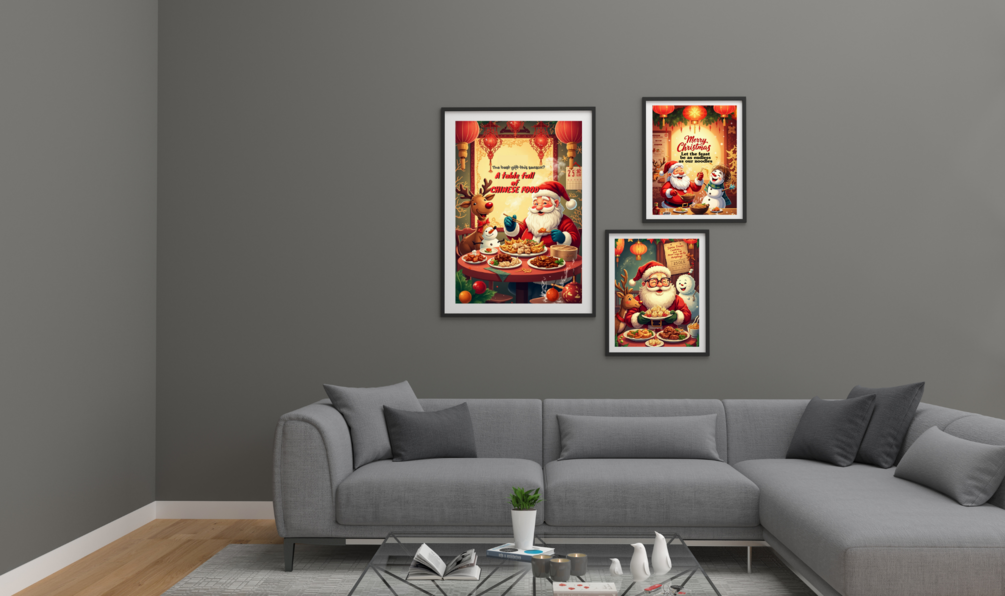 “Santa’s Chinese Christmas Feast – 5 Wall Art Bundle for Restaurant & Food Lovers”