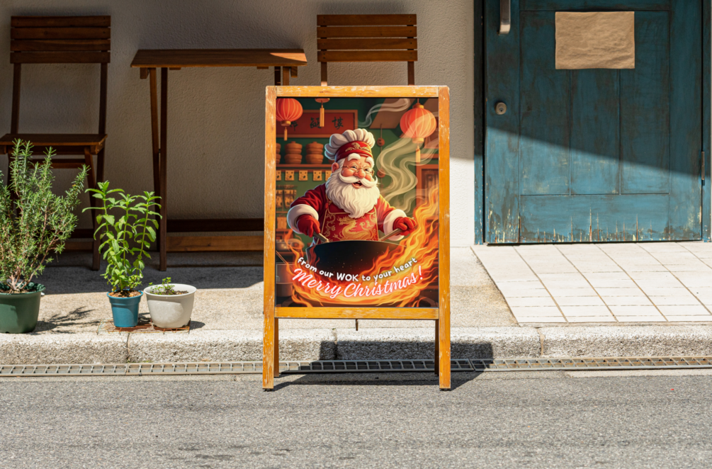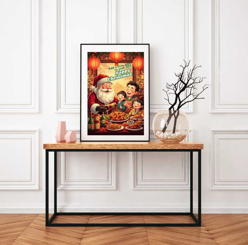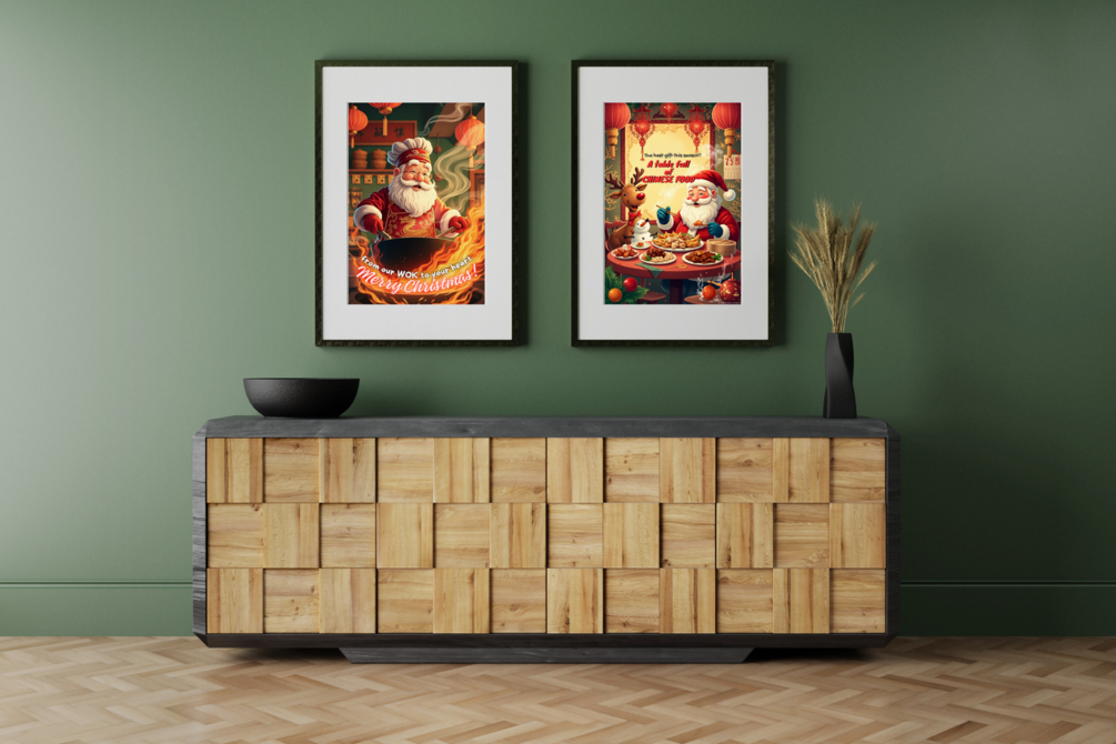These prints perfectly blend Christmas cheer with Chinese culinary culture, ideal for adding warmth, humor, and character to any restaurant or festive space.