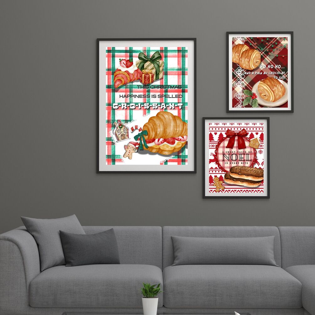 “European Christmas Bakery Wall Art Collection – Sweet Holiday Décor for Café, Bakery & Restaurant”