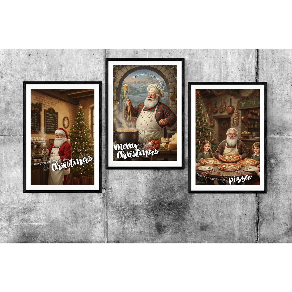 Italian Christmas Café Wall Art Bundle (Set of 5) – Santa Chef Printable Decor for Restaurant & Café