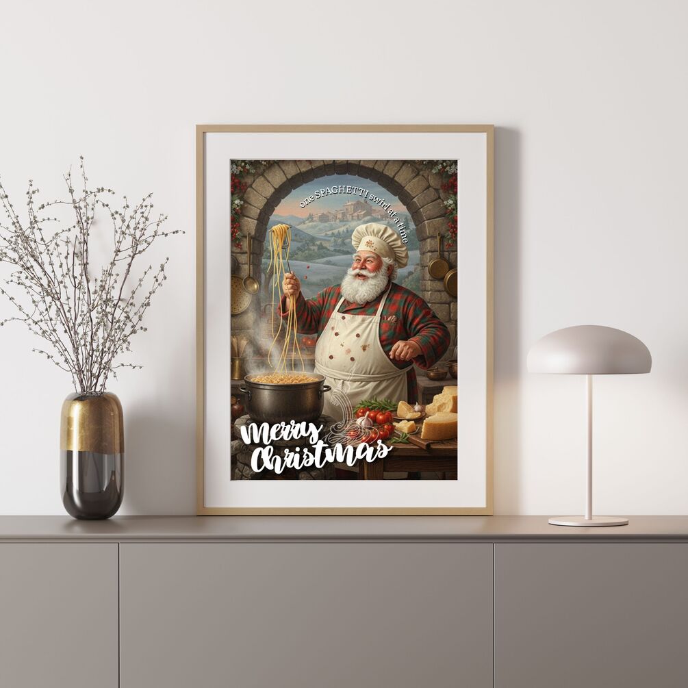 3. Santa Cooking Pasta – “One Spaghetti Swirl at a Time... Merry Christmas”