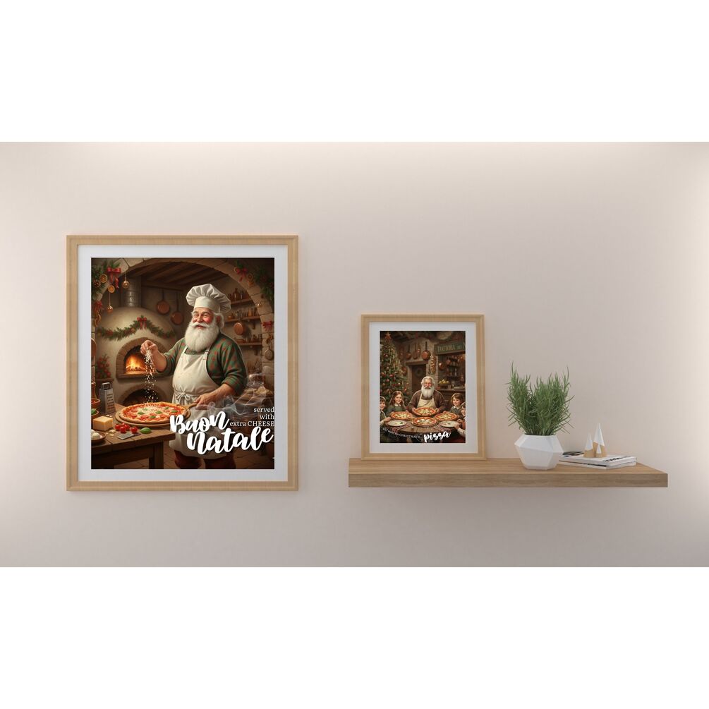 Each artwork carries a fun Christmas quote with Italian flair, perfect for restaurants, pizza stalls, bakeries, or coffee shops that want to celebrate the holidays with style.