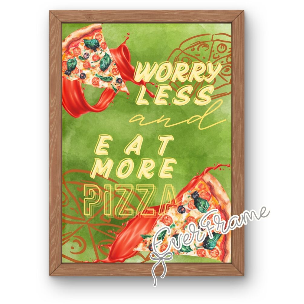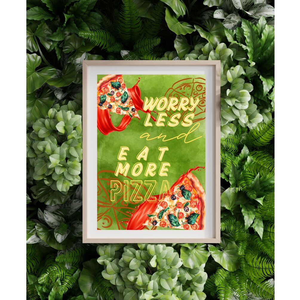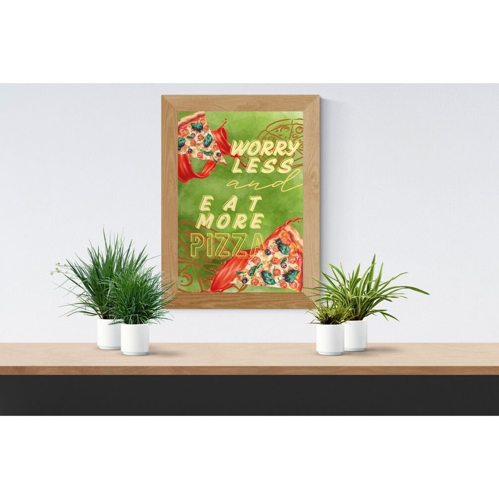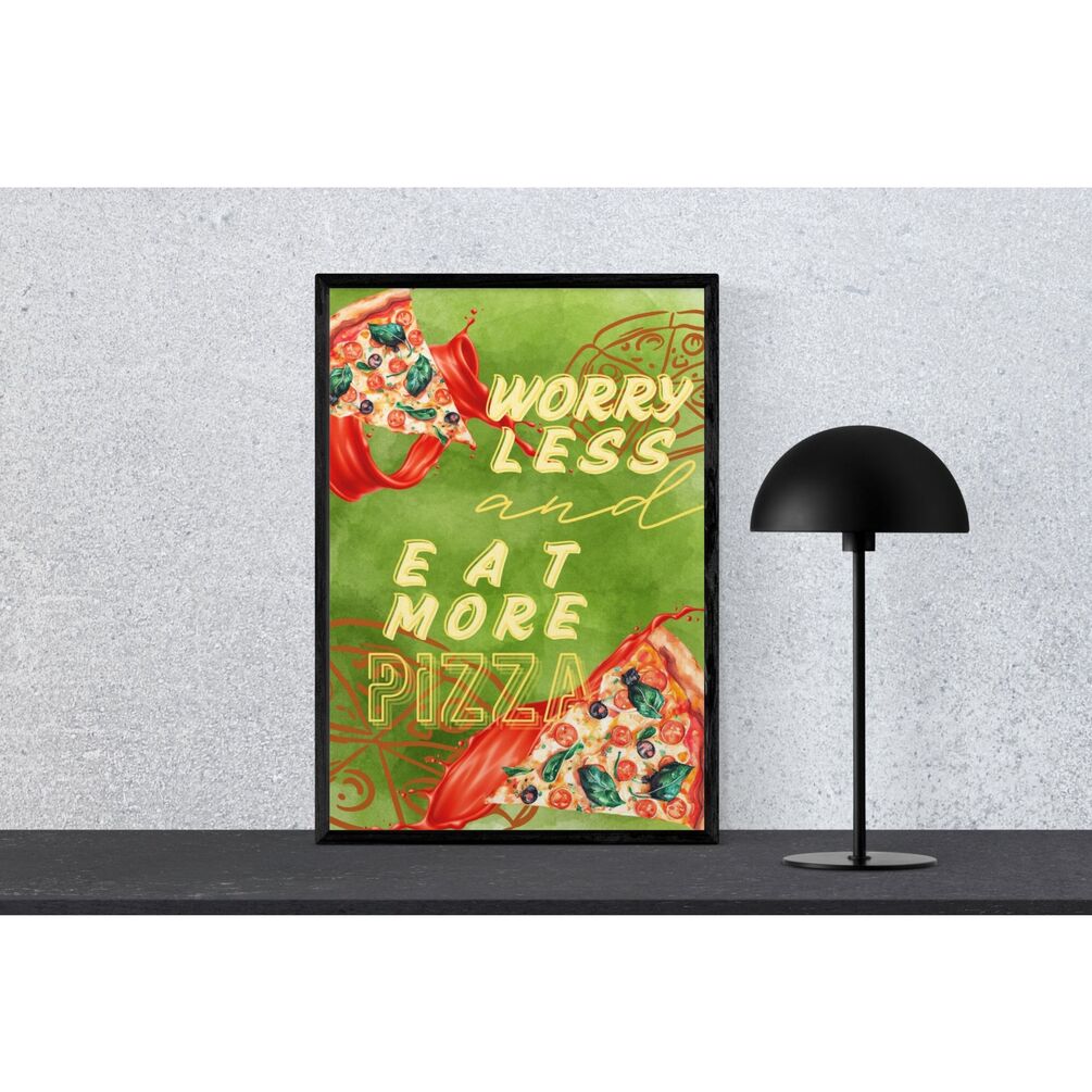 Worry Less, Eat More Pizza – Unique Digital Wall Art for Italian Restaurant & Kitchen Decor